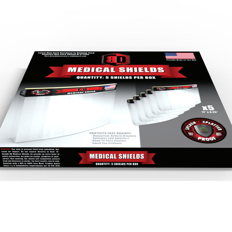 WARNING: Use only to prevent Fluid from splashing. Not rated for impact. Do not expose directly to heat. Although BD Medical Shields do provide an extra layer of safety protection, we make no claims, promises or guarantees that wearing the shield will completely protect from any diseases or germs. For best results, use in combination with a N95 or KN95 Face Mask. Product meets Class l and ll flammability requirements per 16 CFR 1610.